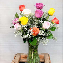 Price: $115.001 Dozen Assorted Roses Vased