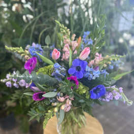 Price: $64.00Spring Wrapped Designer's Choice Flower Bouquet (no vase)