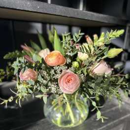 We are not always able to get the exact flowers and containers pictured. Every order is handled with great care and made as closely as possible to what is pictured. Please call us to place your order if you have questions or concerns about this.