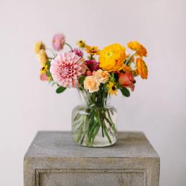 We are not always able to get the exact flowers and containers pictured. Every order is handled with great care and made as closely as possible to what is pictured. Please call us to place your order if you have questions or concerns about this.
