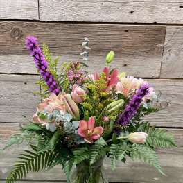 We are not always able to get the exact flowers and containers pictured. Every order is handled with great care and made as closely as possible to what is pictured. Please call us to place your order if you have questions or concerns about this.