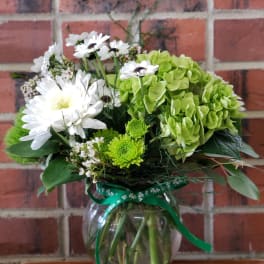 We are not always able to get the exact flowers and containers pictured. Every order is handled with great care and made as closely as possible to what is pictured. Please call us to place your order if you have questions or concerns about this.